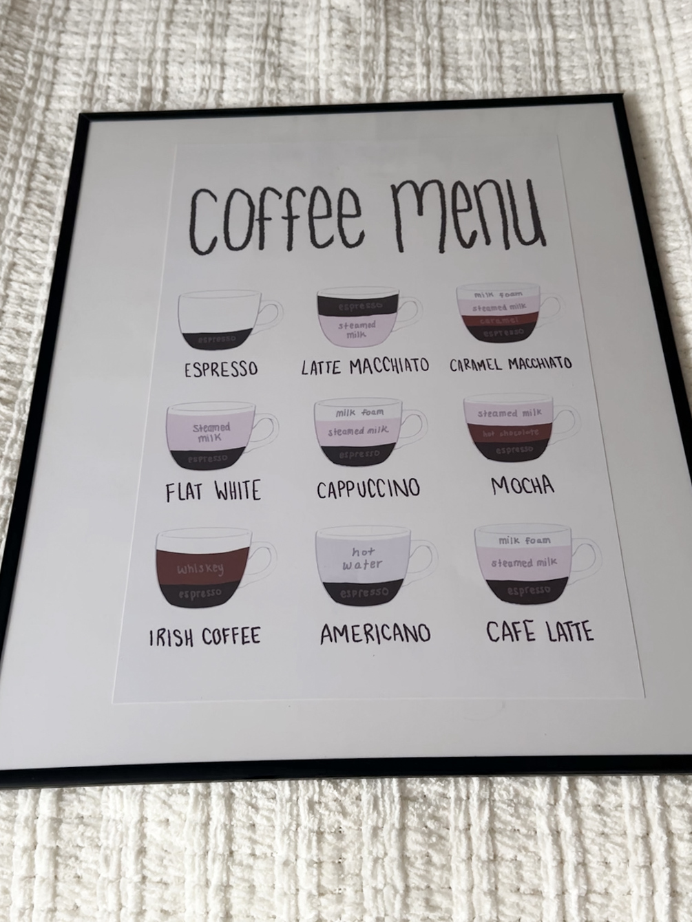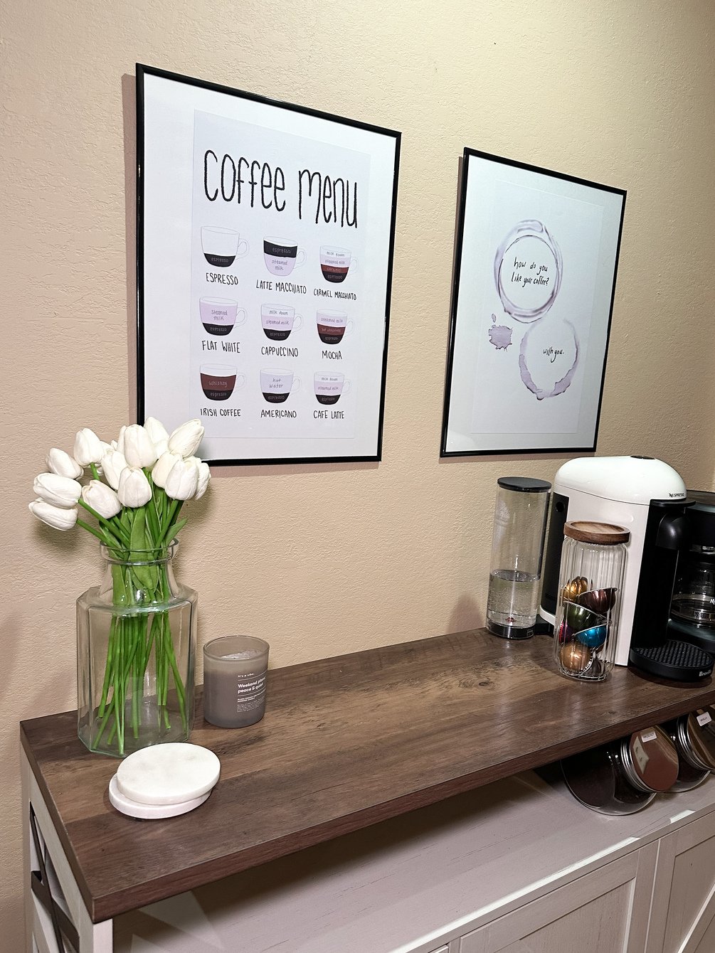 The cutest set for your home coffee bar! This printable art is a super simple way to personalize your home and can fit into multiple frame sizes.